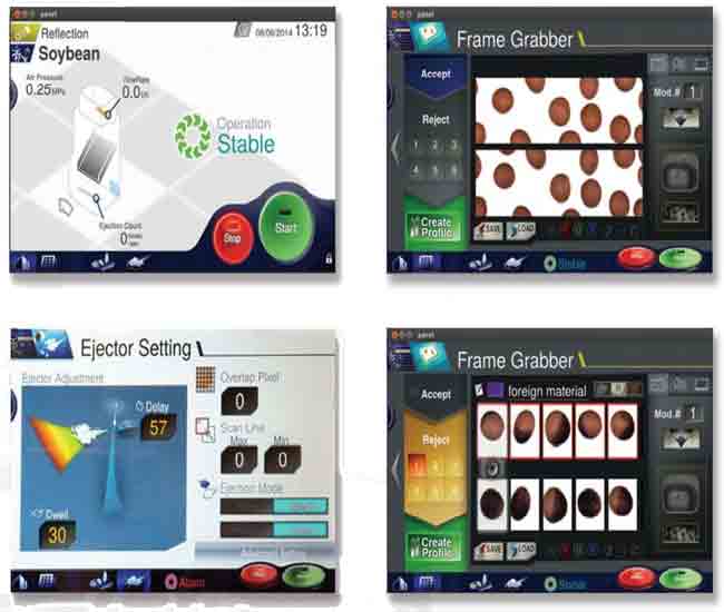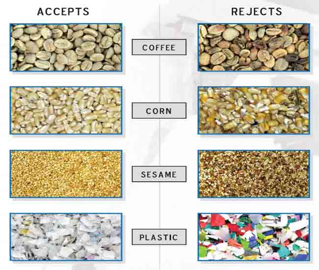 Product to be sorted is fed down a 240mm wide chute opening by a patented high-volume feed delivery system. The high capacity system is able to consistently sort from one pound to 4,000 pounds of product per hour.